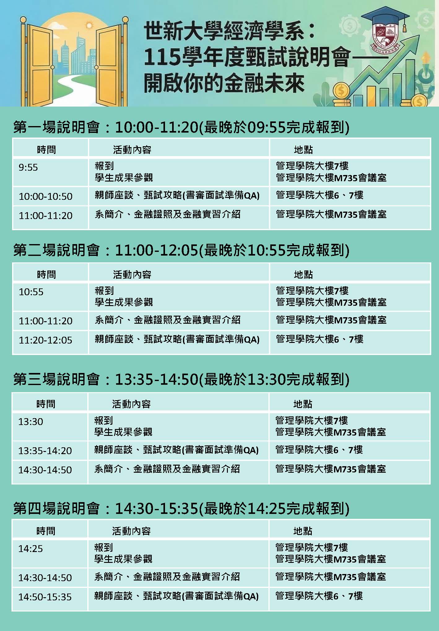 - 活動時間:任選一場次報名,每場次限6組考生及家長,快來報名參加吧!