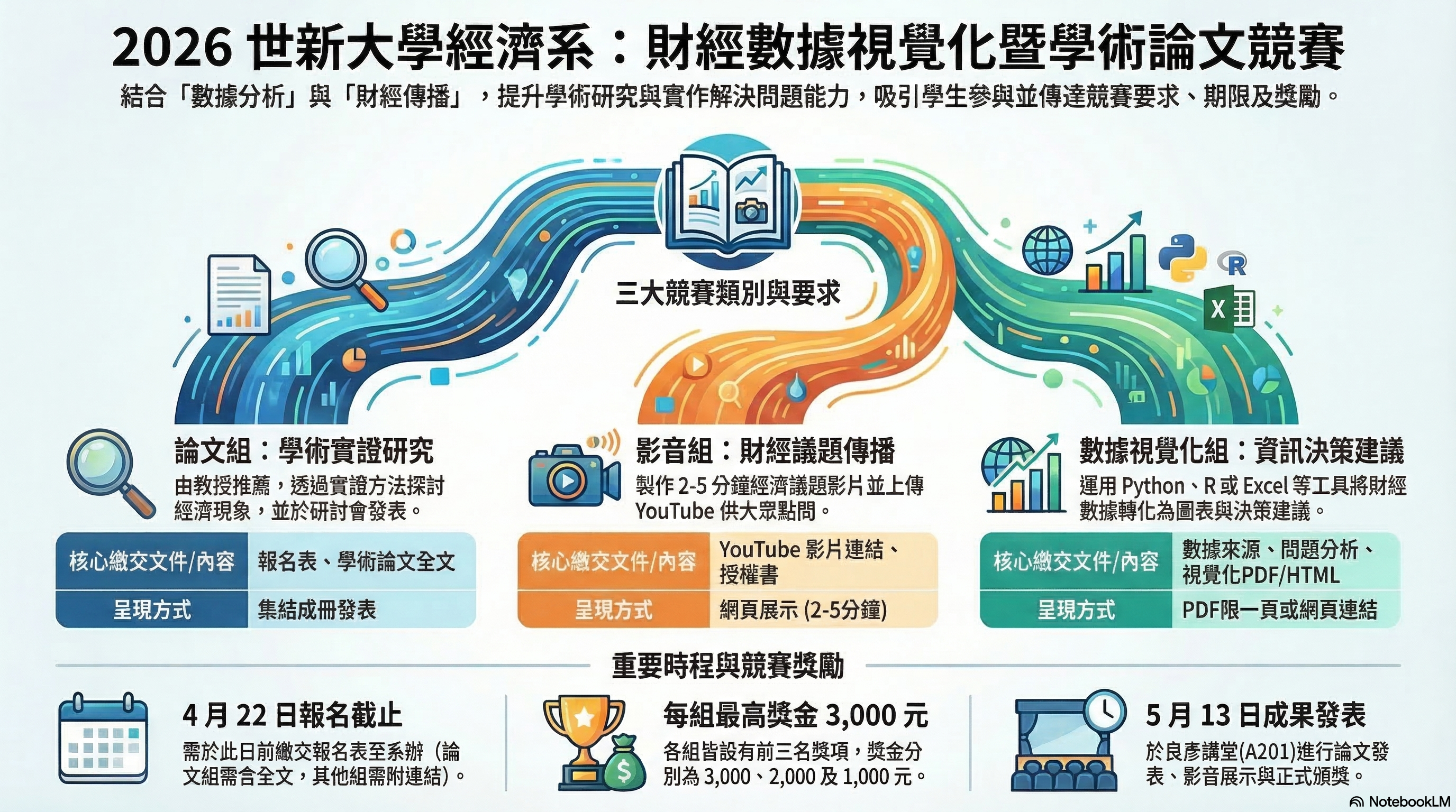 財經數據視覺化組: 運用 R、Python 或 Excel 等工具,將枯燥的數據轉化為具備決策建議的精美圖表。 - 💰 豐富獎勵
